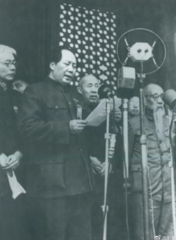 下午三時,在北京天安門廣場隆重舉行中華人民共和國開國大典。毛澤東宣讀《中華人民共和國中央人民政府公告》,向全世界宣告中華人民共和國中央人民政府成立。公告指出:“本政府為代表中華人民共和國全國人民的唯一合法政府。凡愿遵守平等、互利及互相尊重領(lǐng)土主權(quán)等項原則的任何外國政府,本政府均愿與之建立外交關(guān)系。”朱德宣讀《中國人民解放軍總部命令》。命令要求全軍指戰(zhàn)員迅速肅清國民黨軍隊的殘余,解放一切尚未解放的國土,同時肅清土匪和其他一切反革命匪徒,鎮(zhèn)壓他們的一切反抗和搗亂行為?!豆妗肥杖搿睹珴蓶|文集》第六卷;《命令》收入《朱德選集》。