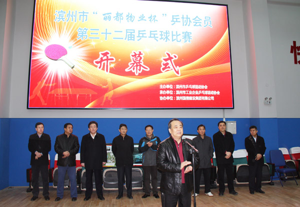 2015年1月31日至2月1日,由濱州市乒乓球運(yùn)動(dòng)協(xié)會(huì)主辦,濱州市工業(yè)企業(yè)乒乓球運(yùn)動(dòng)協(xié)會(huì)承辦,濱州國(guó)信建設(shè)集團(tuán)有限公司協(xié)辦的濱州市“麗都物業(yè)杯”乒協(xié)會(huì)員第三十二屆乒乓球比賽在濱州市老年人體育活動(dòng)中心順利開幕。各縣區(qū)共計(jì)19個(gè)代表隊(duì)參加了此次比賽。